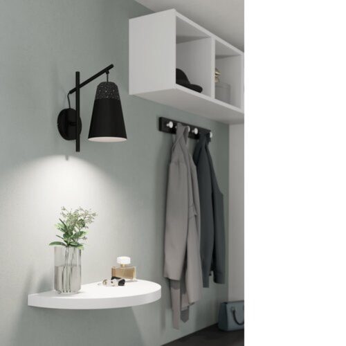 A CANTERRAS fali lámpa modern, nordikus dizájnt képvisel, amely stílusosan beleillik a mai belső terekbe. Fekete, konikus fém búrája szürke és fehér terrazzo részletezéssel díszített, míg a fém mennyezeti rögzítő elem fekete színben készült. Az által nyújtott hangulatos világítás a nappaliban, hálóban, folyosón vagy étkezőben egyaránt kellemes atmoszférát teremt. A termék E27-es hőcserélős lámpafoglalattal rendelkezik, amelyhez 1 darab E27-es fényforrás szükséges, de ez nem tartozéka a terméknek. A lámpa maximális teljesítménye 40W, és a telepítése egyszerű.
