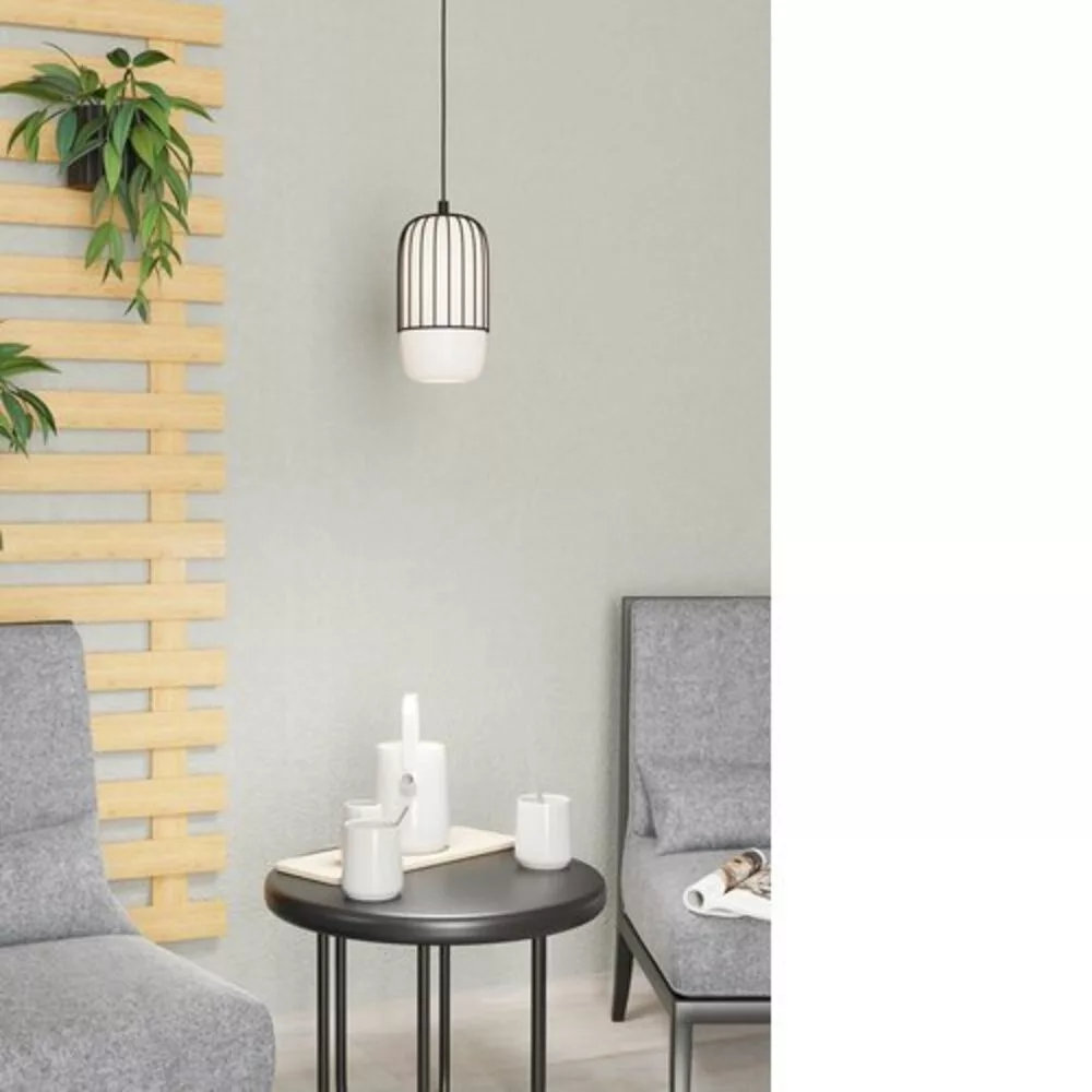 A MULEGES függeszték lámpa elegáns fekete fém mennyezeti tartóval és fekete drót árnyékkal rendelkezik, amely egy matt fehér opál üveg testet ölel körül. Az opál üveg lágy és egyenletes fényt biztosít, lenyűgöző fény- és árnyékjátékot teremtve a körülötte lévő drót héjban. Ez a klasszikus függeszték lámpa tökéletesen illeszkedik bármilyen enteriőrbe, különleges világítást biztosítva a nappaliban vagy az étkezőasztal felett. A fényforrás nem tartozék a termékhez. A lámpa E27 foglalattal rendelkezik, így bármilyen E27 típusú fényforrással használható. Maximális teljesítménye 1x40W.