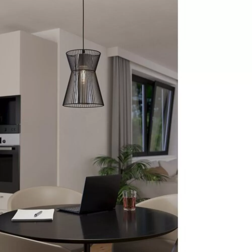 A MASETA függeszték lámpaórglass alakú fekete drót lámpabura és egy belső füstüveg hengert tartalmaz. A drótbúra lenyűgöző fény- és árnyékjátékot varázsol a térbe. A fekete és füstüveg harmonikus kombinációja tökéletesen illeszkedik a modern belső terekhez, így megfelelő hangulatot teremt a nappaliban vagy az étkezőben. A lámpához E27 foglalat szükséges, de a fényforrás nem tartozék.
