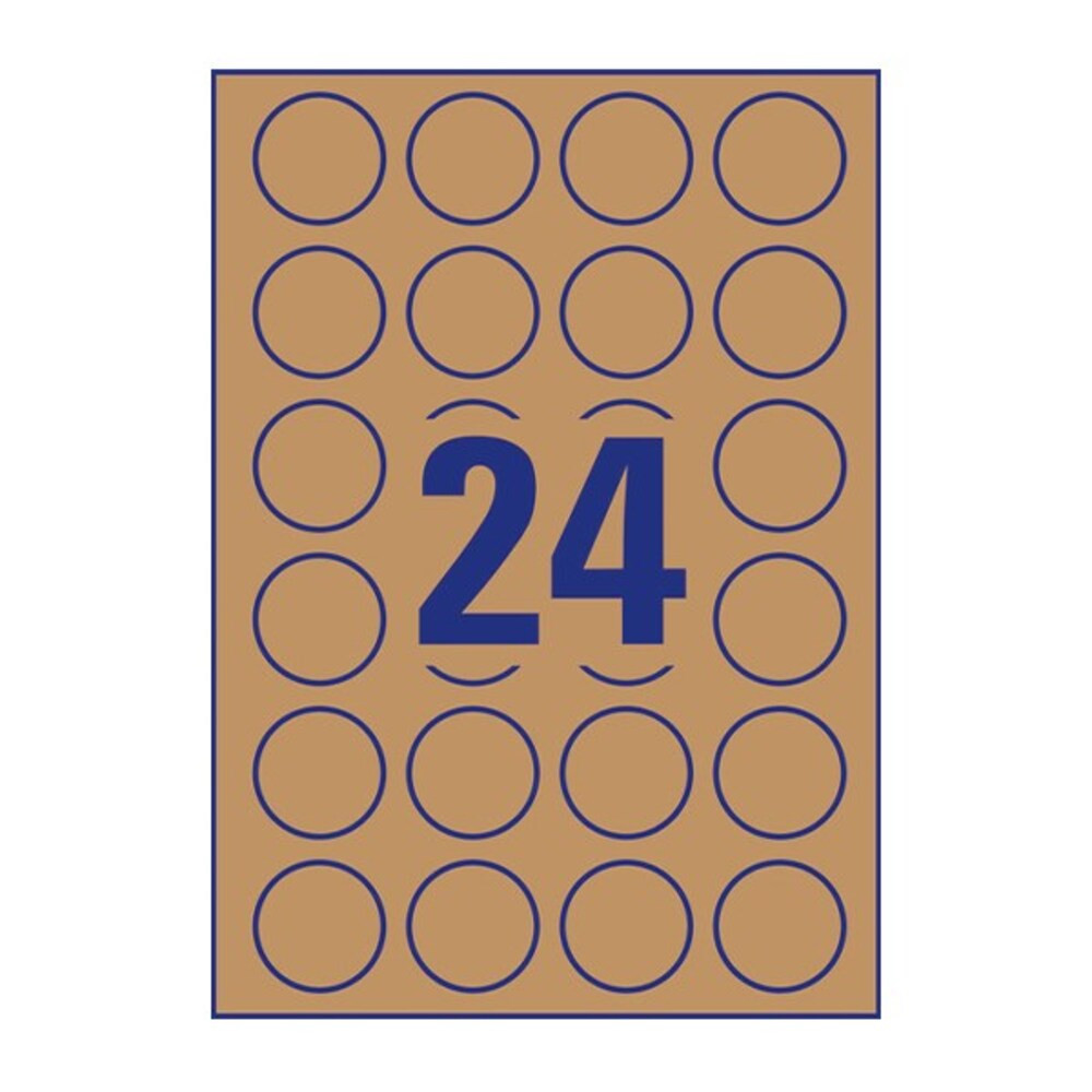 Etikett AVERY L7105-25 40 mm újrahasznosított kör barna kraft 25 íves