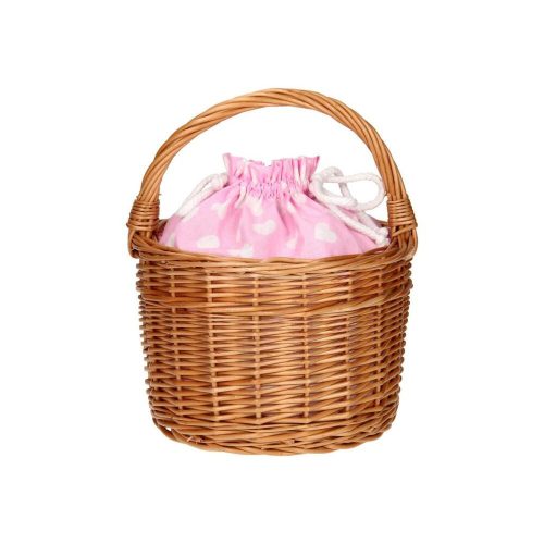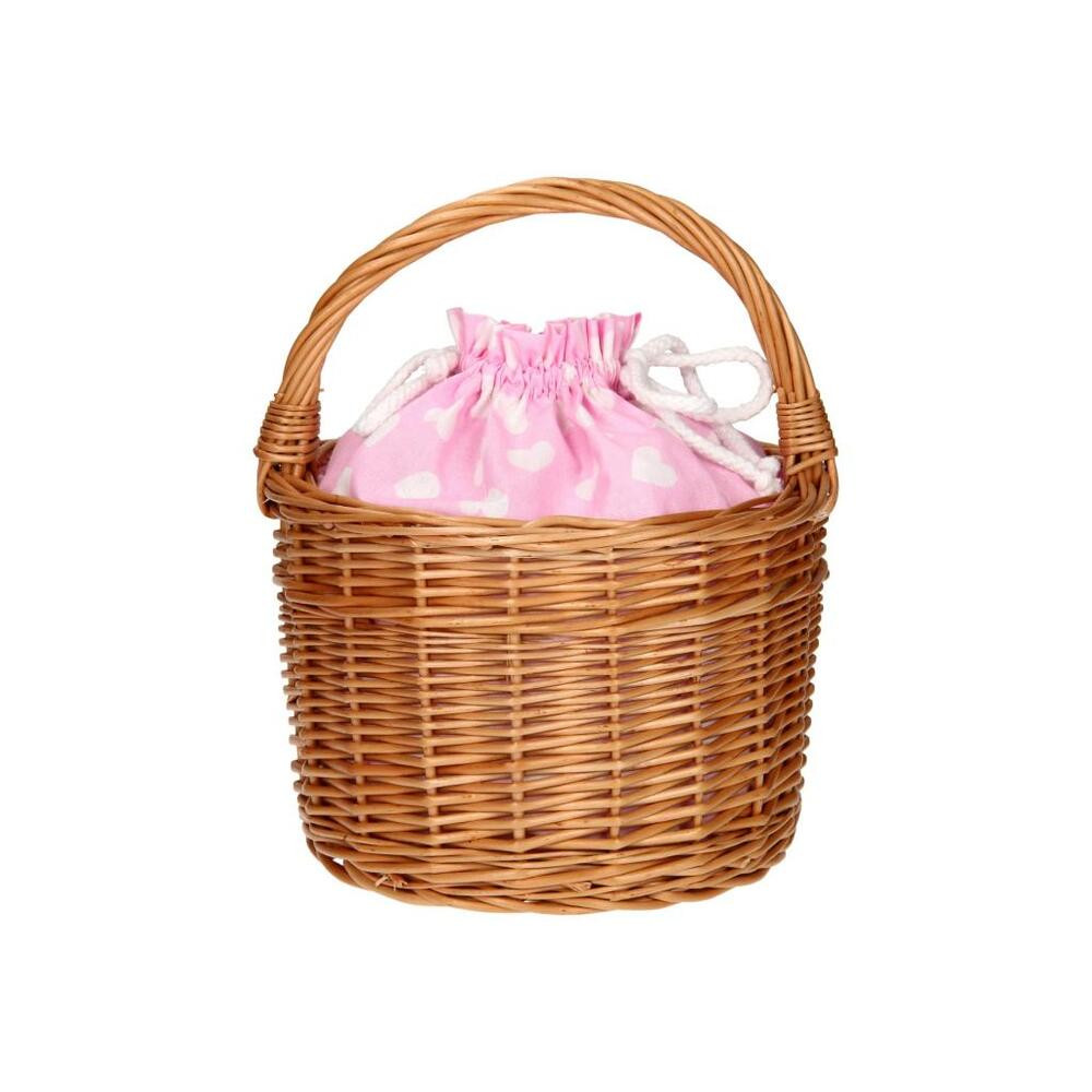 Minőségi vesszőből font kosár rózsaszín szivecskés, zárható textillel.Méret: O 20 x 28 cm; Anyaga: nád