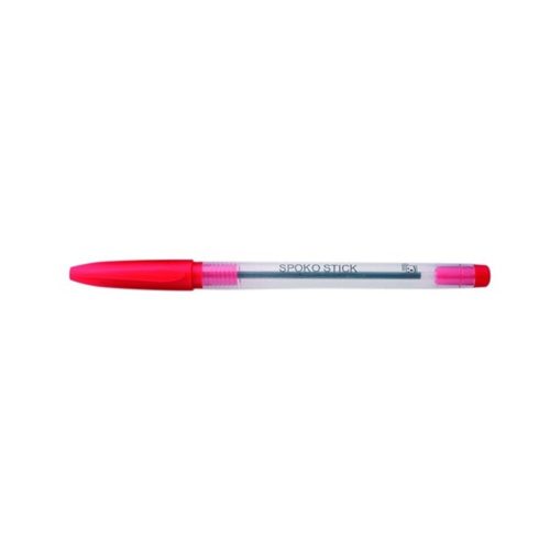 Műanyag testű eldobható golyóstoll, nemcserélhető betéttel, levehető kupakkal.