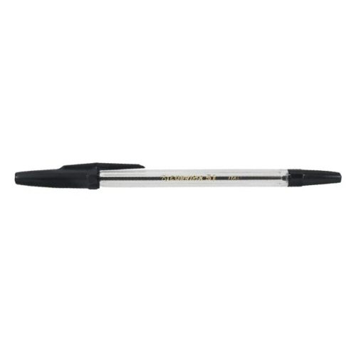 Cserélhető betétes, műanyag testű golyóstoll fekete színben, tinta színével megegyező kupak. Írásvastagság 0,7mm