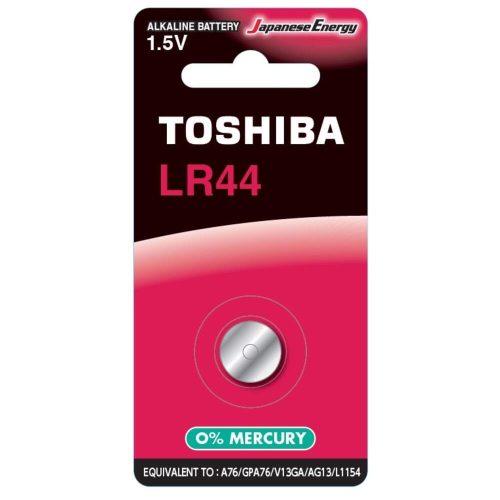 Gombelem LR44 , lapos elem , 1.5 Volt , 1 darab , tartós , elem , higany mentes , TOSHIBA