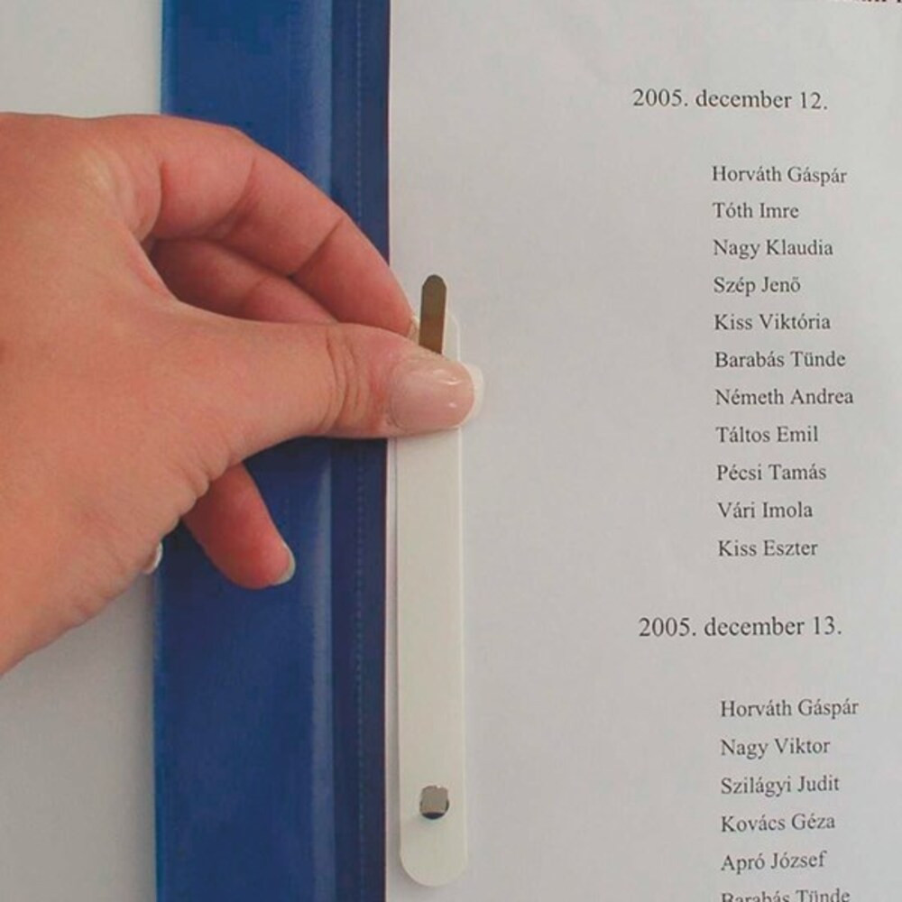 Gyorslefűző a lyukasztott lapok rendszerezésére és védelmére.