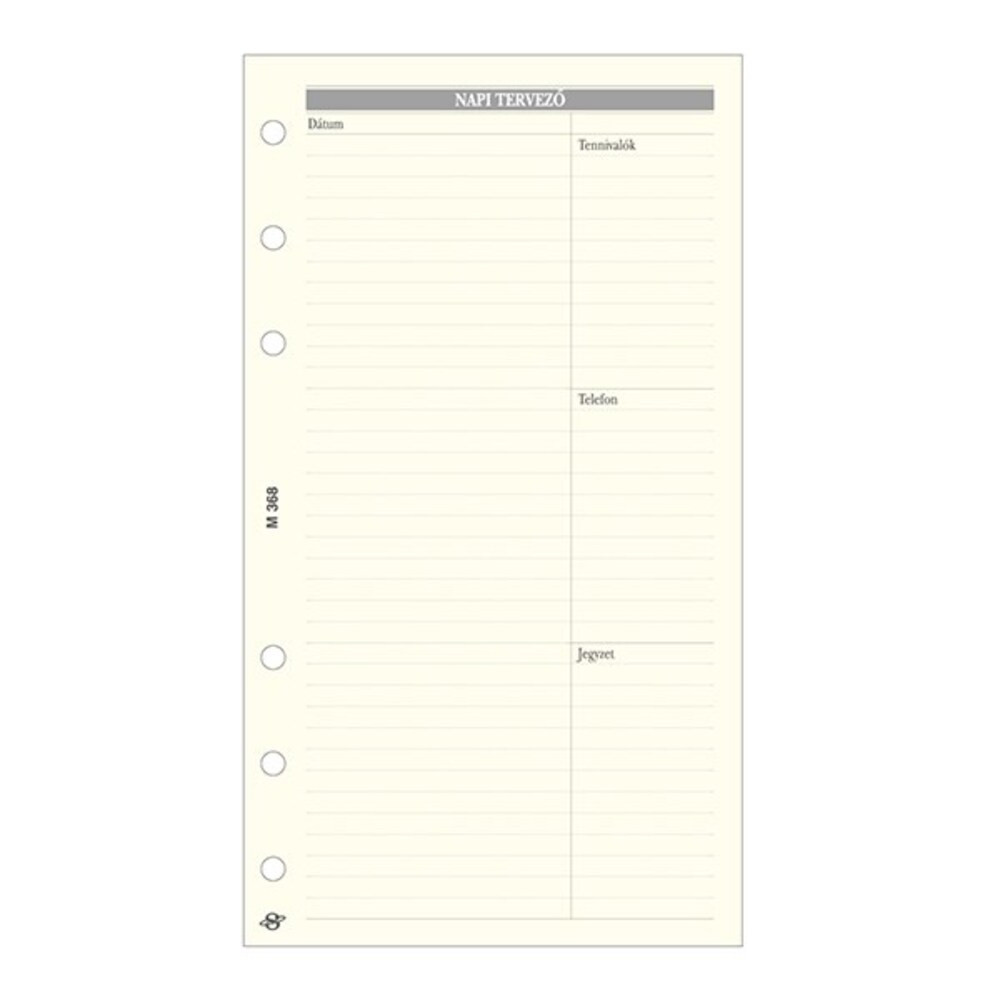 Gyűrűs kalendárium betét SATURNUS M368 bianco napi tervező sárga lapos