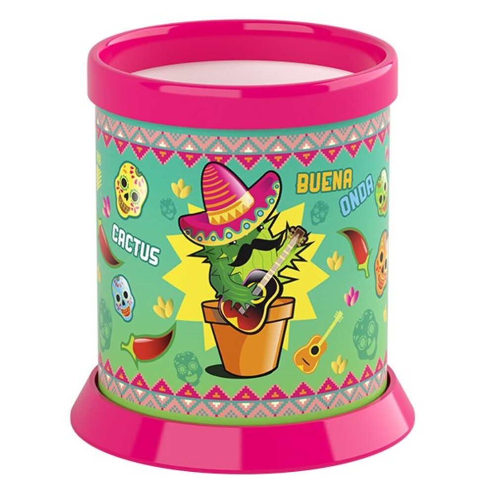 Kaktusz motívummal díszített henger alakú, asztali írószertartó