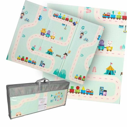 Kétoldalas, összecsukható habszivacs oktatószőnyeg, panda utca, 180 x 200 cm