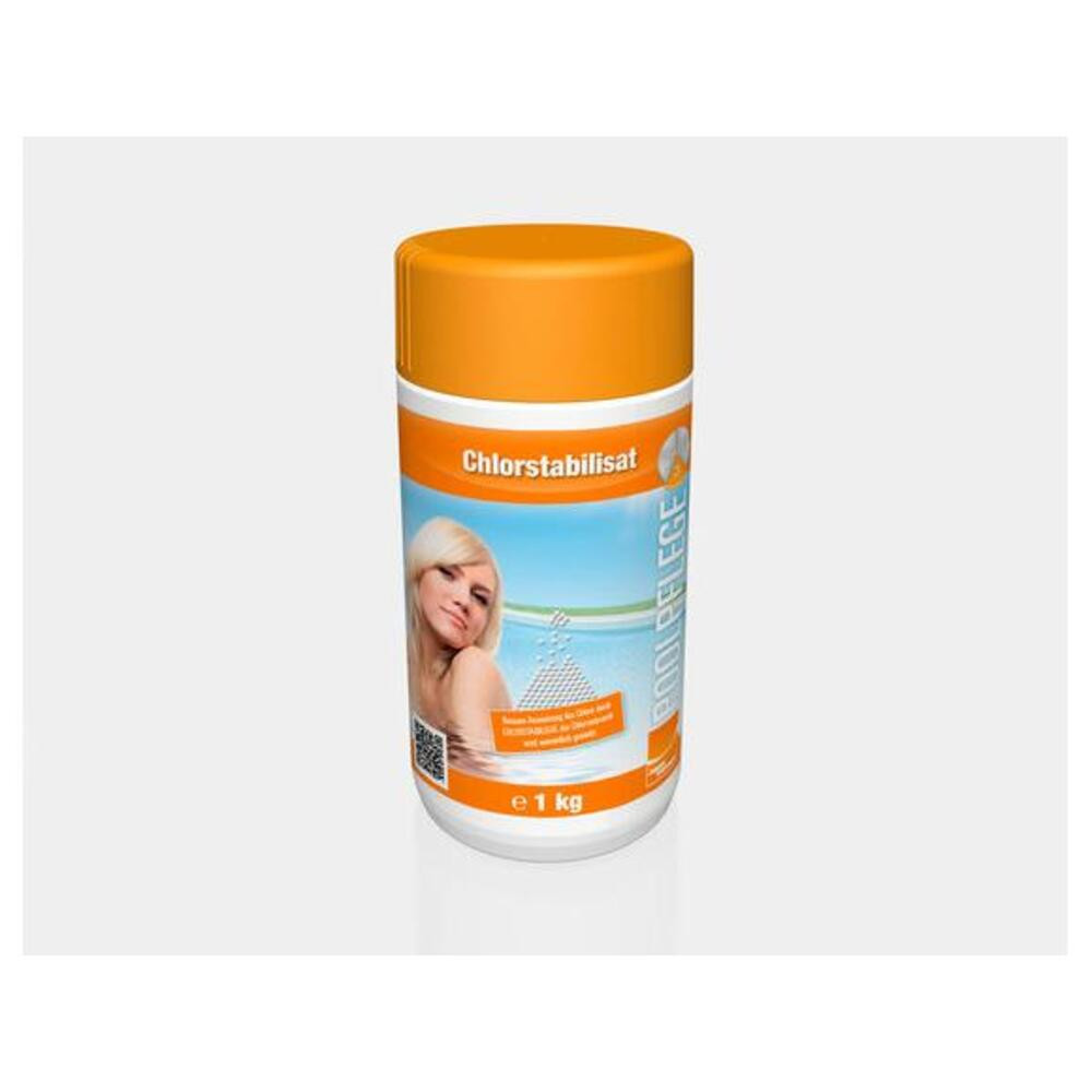 A klorstabilizatorral jobban kihasznalhatja a klor hatekonysagat, a klofelhasznalast jelentosen csokkentheti; Felhasználási terület: Ezt a terméket kizárólag a megadott leírás alapján használja. A klór veszteség az erős napsugárzás és a magas vízhőmérséklet mellett nagyon nagy. A klór jobb kihasználásának érdekében használjon klórstabilizátort. Ezáltal tovább csökkenthető a kellemetlen klórszag. A klórstabilizátor nem támad meg más anyagokat ezért jól tárolható. A klóstabilizátort csak friss vízzel együtt adagolja a medencébe.; Felhasználási javaslat: A fürdővíz pH értékét pH mínusz vagy plussz használatával állítsa be 7,0-7,4 közötti értékre. Adagolás: Első adagolásnál 5-20g/m3 mennyiségben adagolja a fürdővízhez. Kezelés: Az első adagolát követően, csak friss vízmennyiséggel adagolja.