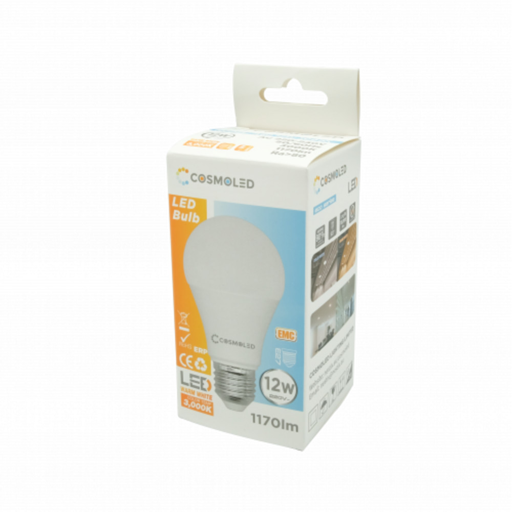 LED lámpa , égő , körte , E27 foglalat , 12W , meleg fehér , A60 , COSMOLED