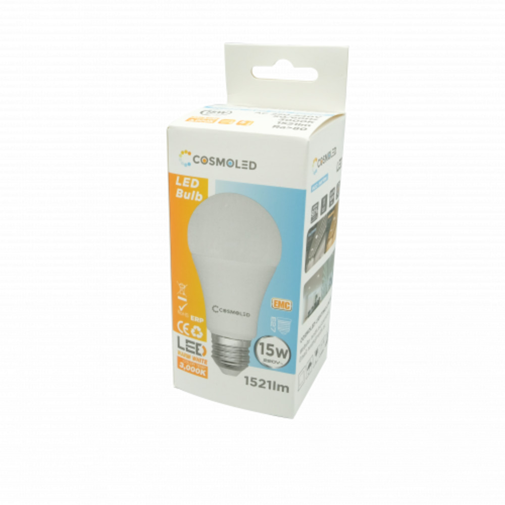 LED lámpa , égő , körte , E27 foglalat , 15W , meleg fehér , A60 , COSMOLED