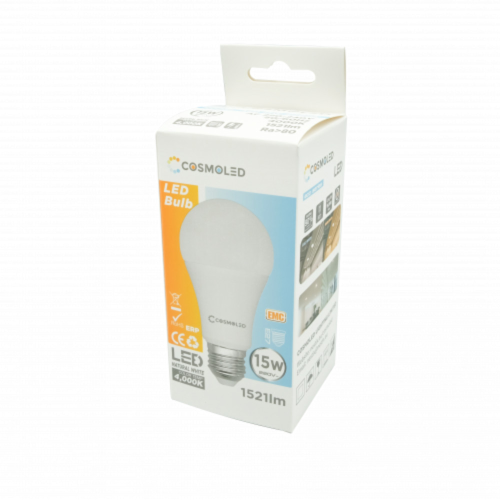 LED lámpa , égő , körte , E27 foglalat , 15W , természetes fehér , A60 , COSMOLED