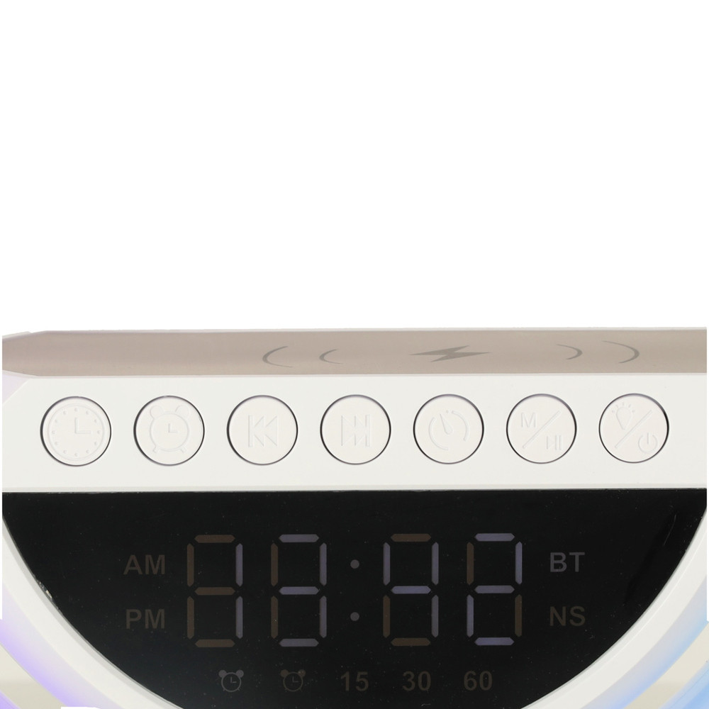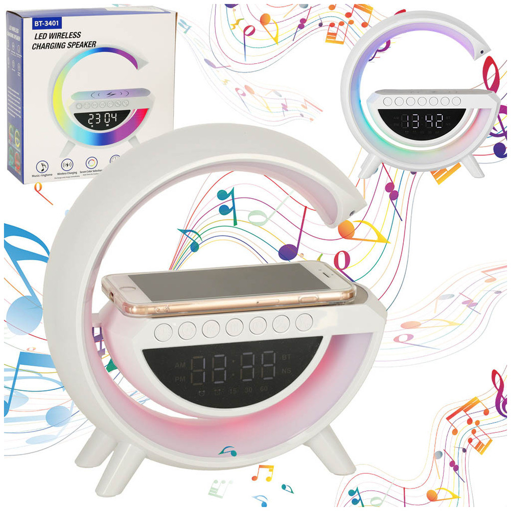 vezeték nélküli töltő, óra, LED lámpa, rádió, hangszóró, ébresztőóra,