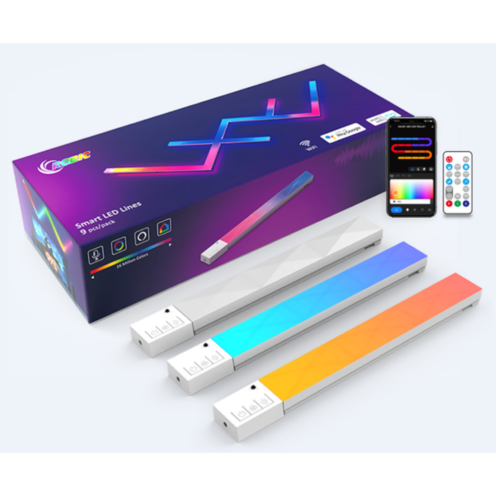 LED lámpa szett , 9 db , távirányítóval , RGB + IC (digitális) , dimmelhető , USB , WIFI/Bluetooth , TUYA , LEDISSIMO AMBIENT LIGHT
