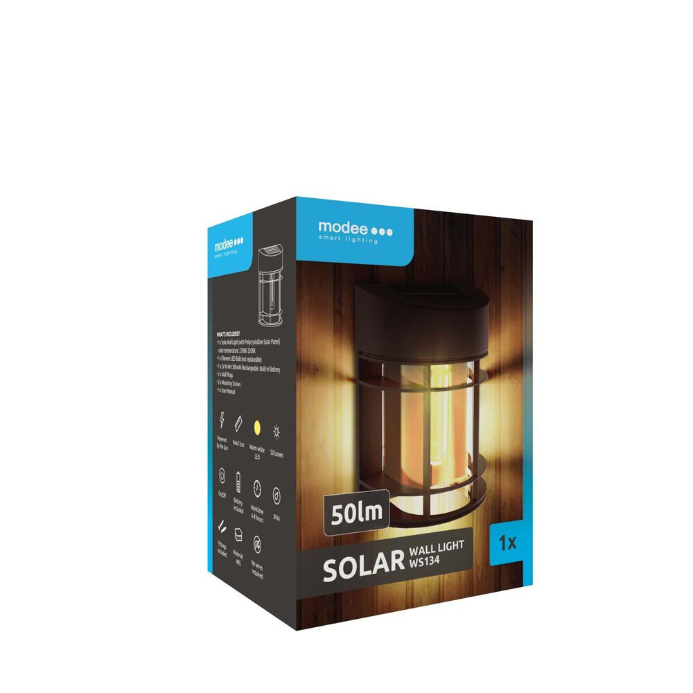 A Modee WS134 egy kis méretű fali szolár lámpa, mely letisztult, elegáns kialakításának köszönhetően biztosan mindenki felfigyel majd! Egy polikristály szolár panellel működik, melyek napközben, a napfény hatására töltődik fel, ezáltal akár 8 órán keresztül is képes akár 50 lumen fényárammal világítani. Színhőmérséklete 2700-3200K, hangulatos meleg fehér fényt biztosít, így tökéletes választás pihenőhely megvilágításhoz.