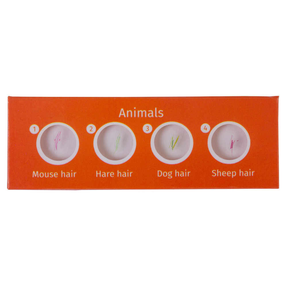 A Levenhuk LabZZ előkészített tárgylemez-készlet eredeti kialakítású tárgylemezekben különböző mintákat tartalmaz. Szemléltető segédeszközként használhatók a növény-, az állat- és a rovartan területén. Ez igazi kincs a kíváncsi gyerekeknek! Csak rá kell tenni a mintát a tárgyasztalra és már vizsgálhatja is az egérszőrt, a légylábat, a vízibolhát és a többi mintát. A minták alsó megvilágítással bármilyen gyártmányú mikroszkópban vizsgálhatók.