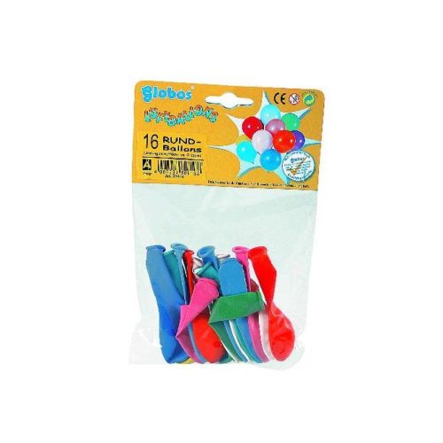 16 színes lufi A 16 db lufi egy zacskóban 3-5 éves gyermekek számára alkalmas. Mérete: hossza 21 cm, szélessége: 13,5 cm, magassága: 1 cm.