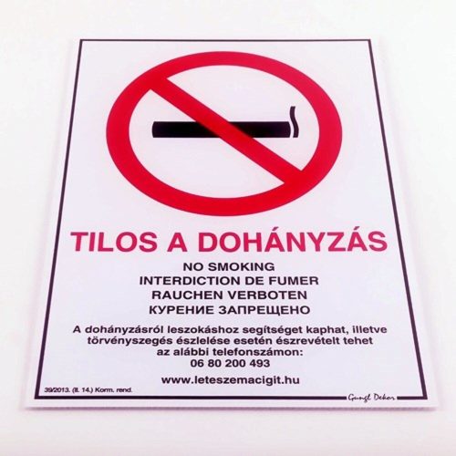 Matrica Tilos a dohányzás! fehér többnyelvű A/4 új