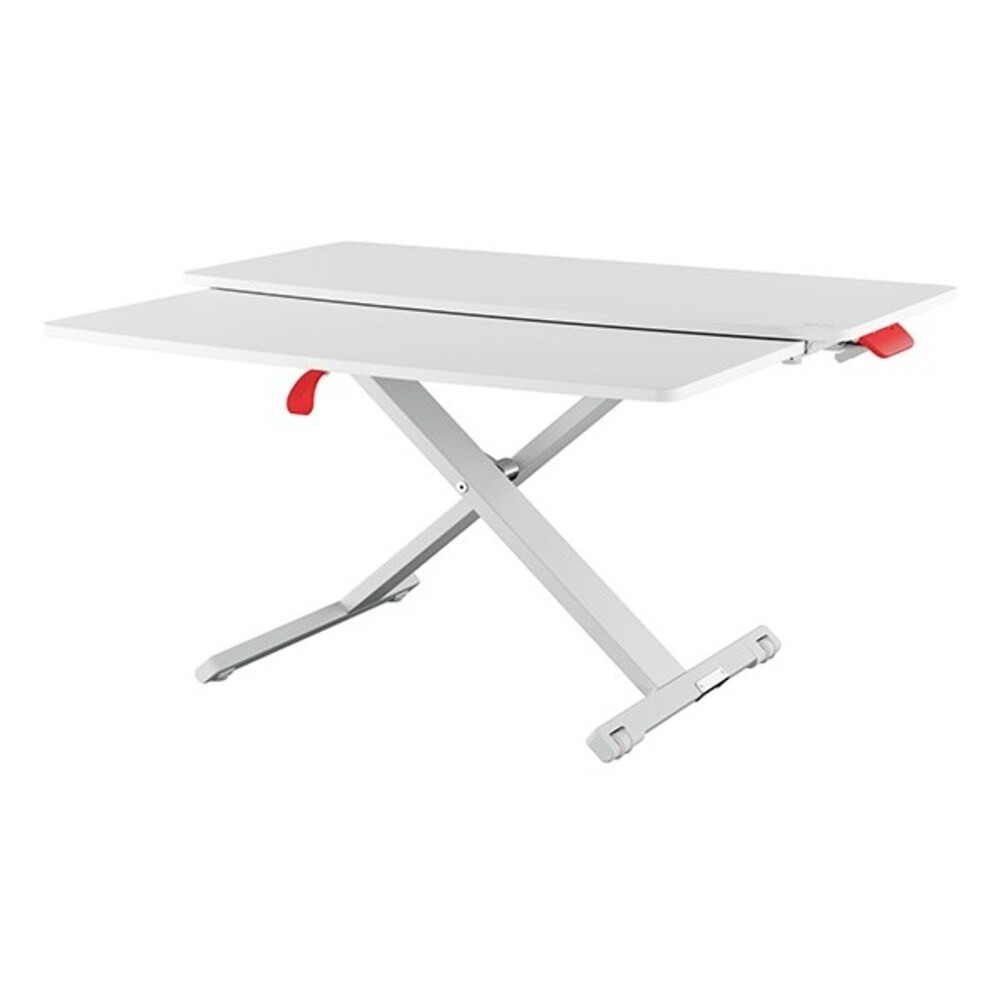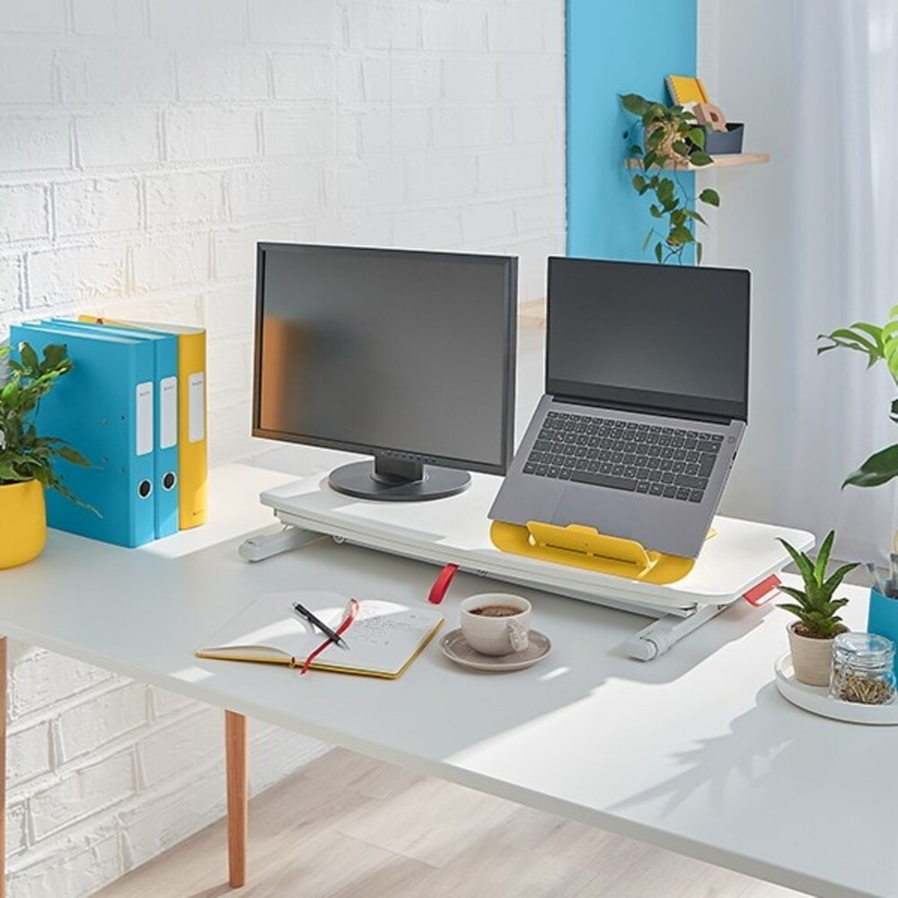 Stílusos, ergonómiai szempontok alapján tervezett ülő-álló munkaállomás kihúzható polccal a billentyűzet és egér számára, hogy egész nap lendületben maradhass!