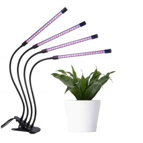 Növénynevelő LED lámpa , 4 karos , 15 Watt , USB , csiptethető , dimmelhető , időzíthető , IP44 , LEDISSIMO GROW