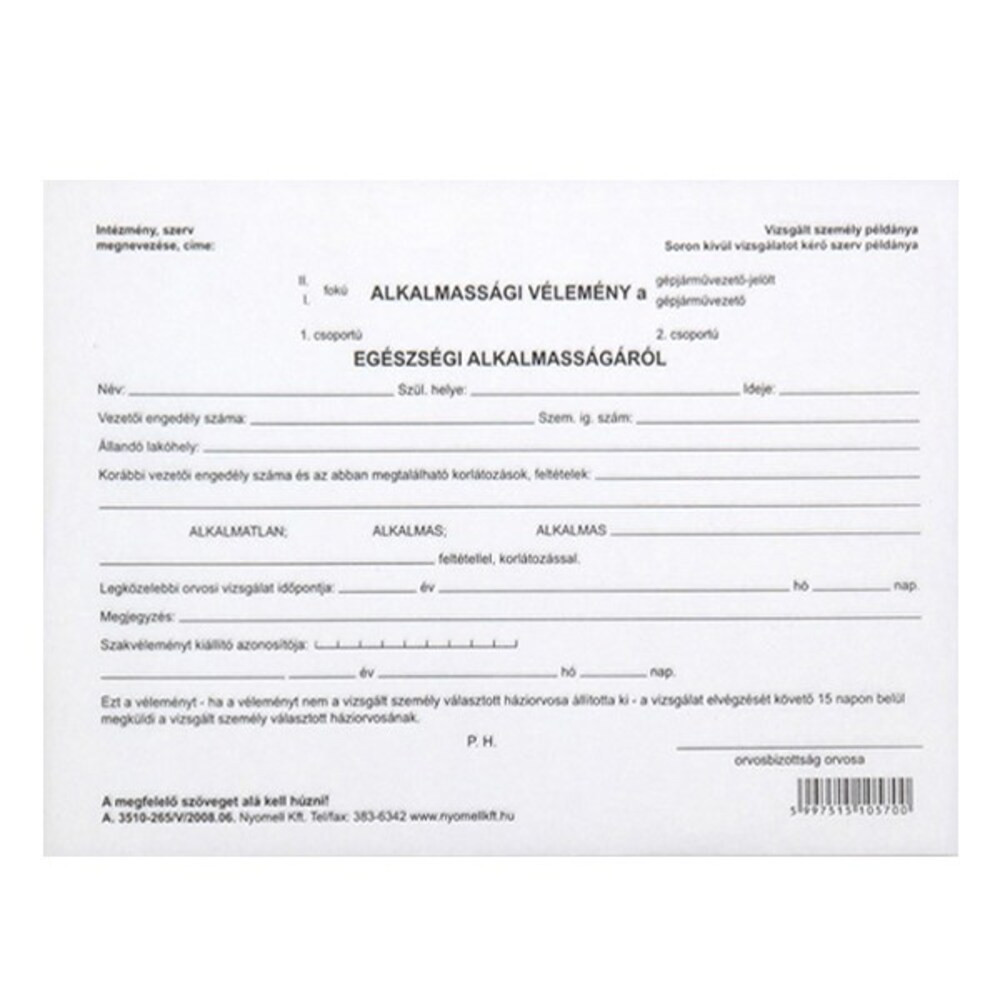 Nyomtatvány egészségi alkalmassági vélemény