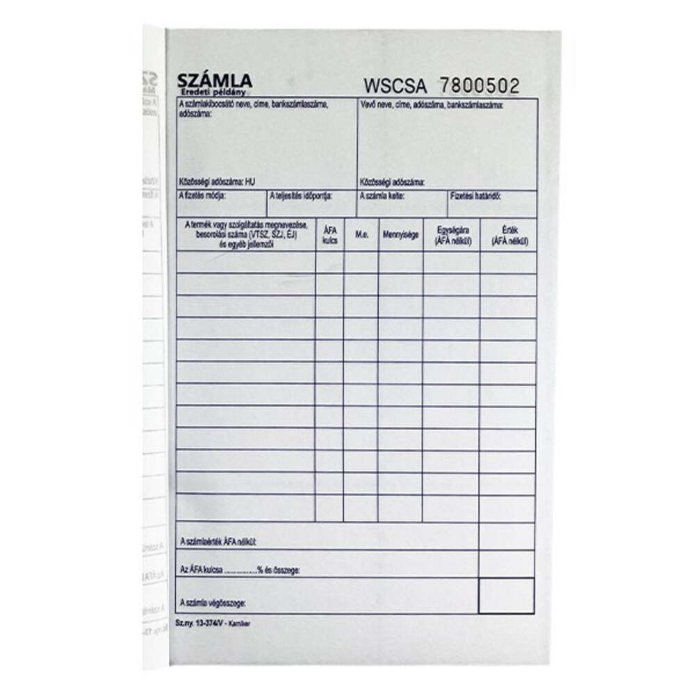 A/5 méretű, álló formátumú, 50 lapos, 3 példányos, 1 áfás.