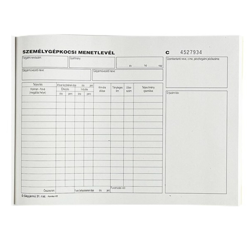 Nyomtatvány személygépkocsi menetlevél VECTRALINE A/4