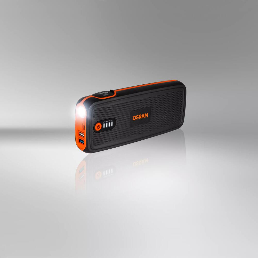 Az OSRAM BATTERYstart400 egy nagy teljesítményű lítium-kobalt LiCoO2 indítókábel 12V-os járművekhez, legfeljebb 8L-es benzines és 4L-es dízelmotorokhoz. Kompakt kialakításának köszönhetően könnyen elfér az autó kesztyűtartójában, így vészhelyzetekben is kényelmesen használható. Intelligens klipszei túlfeszültség-, fordított polaritás- és rövidzárlat-védelemmel rendelkeznek, biztosítva a biztonságos működést. Emellett power bank funkcióval is rendelkezik, amely lehetővé teszi elektronikus eszközök, például mobiltelefonok és táblagépek töltését, valamint egy fényes LED munkavilágítást is tartalmaz. Ideális minden autó méretéhez, SUV-okhoz, furgonokhoz és motorkerékpárokhoz.