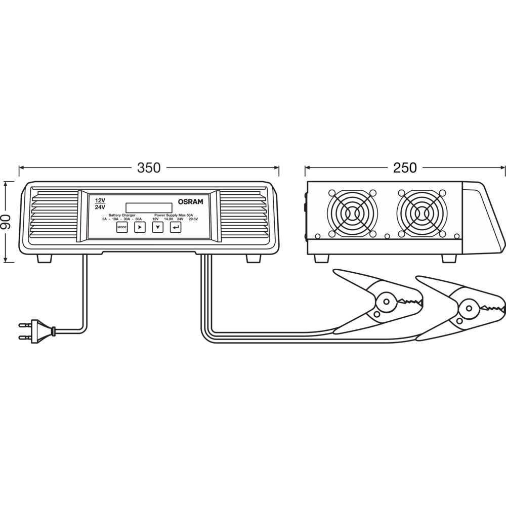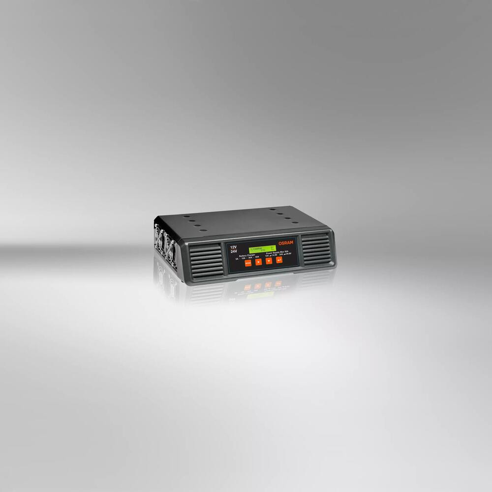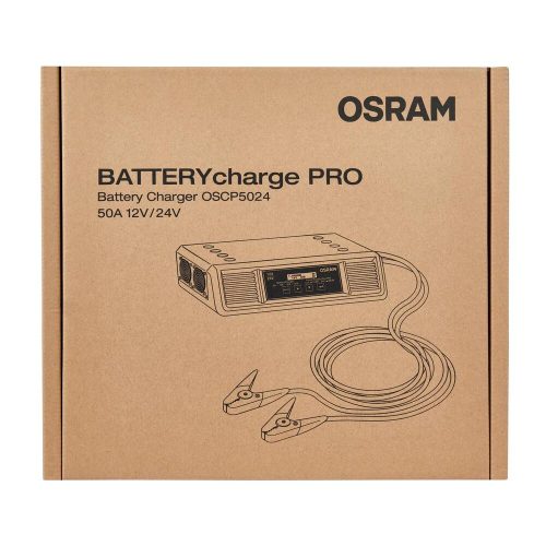 Az OSRAM BATTERYcharge PRO 50A egy professzionális, intelligens akkumulátor töltő, amely számos akkumulátor típushoz alkalmas 12V és 24V járművekhez. Ideális, amikor különböző járműveket és akár teljes flottákat kell karbantartani, különösen professzionális műhelyekben vagy bemutatótermekben.