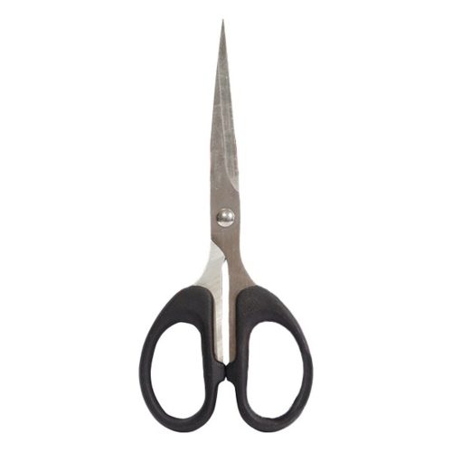 Hegyes végű, rozsdamentes acélból készült, műanyag nyelű olló. Hosza 16cm.