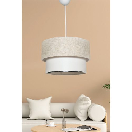 A 30 cm átmérőjű és 65 cm magas csillárunkat úgy terveztük, hogy nagy feltűnést keltsen. A 30 cm-es átmérőjű és 20 cm-es magasságú kupak tökéletesen kiegészíti a teljes dizájnt, harmonikus és magával ragadó látványt teremtve. Krém és fehér színkombinációja melegséget és sokoldalúságot kölcsönöz, könnyedén illeszkedik bármilyen színösszeállításhoz.