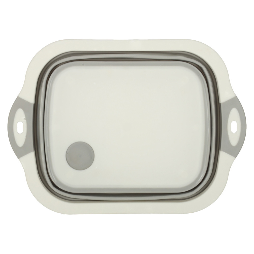 Összecsukva minimális helyet foglal egy lakóautóban vagy hátizsákban lévő szekrényben, kihajtva pedig praktikus összecsukható szilikon mosogatóvá vagy összecsukható szilikon csepegtetővé alakul, amely tökéletes gyümölcsmosáshoz, tésztaöblítéshez vagy edények mosogatásához a szabadban. Kényelmes hordozófogantyúk és innovatív kialakítás