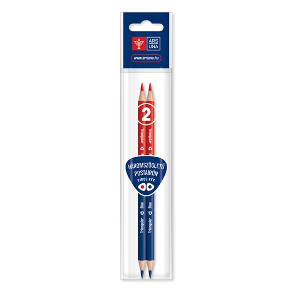 Háromszögletű,ergonomikus kialakítású postairón, törésálló béllel, piros-kék színben. Könnyen hegyezhető. Csomagolása: 2 db/PP tasak, EURO lyukkal ellátva.