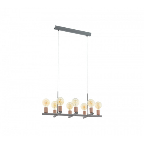 Ez az ADRI 2 sorozatú függesztett lámpa acélból készült, és a szürke és rózsaarany színkombinációval van bevonva. Nyolc E27-es fényforrást igényel a fényléshez.