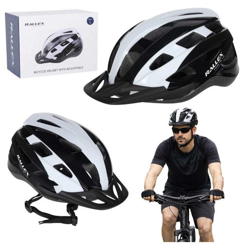 RALLEX női és férfi kerékpáros sisak, állítható, fekete-fehér, L 58-62cm