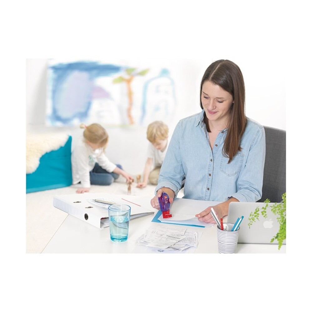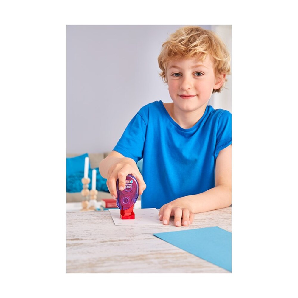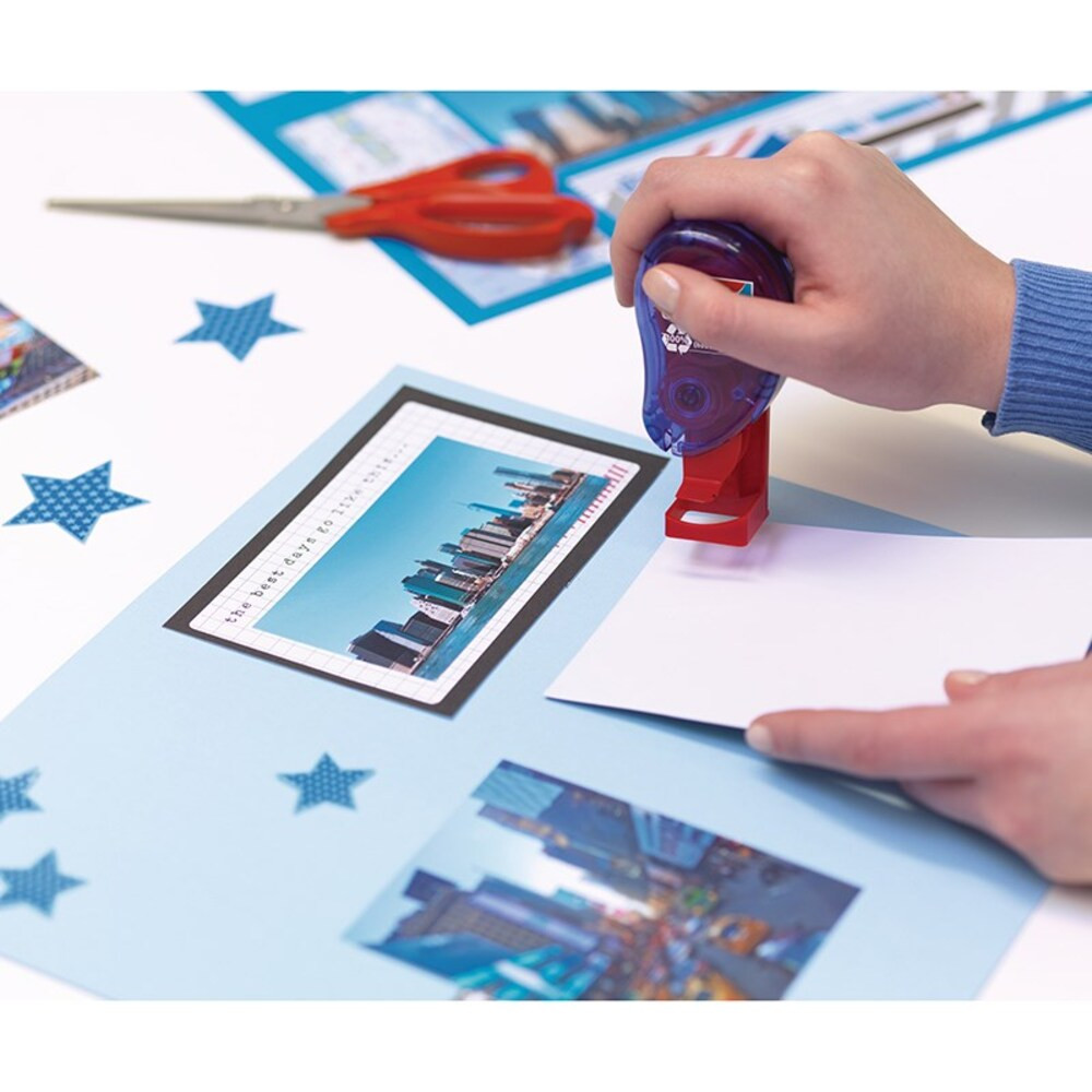 8,4 mm-es kétoldalú ragasztónégyzeteket adagol, amik ideális megoldást nyújtanak költségelszámoláshoz, fotók ragasztásához és egyéb háztartási dekorációs munkákhoz.