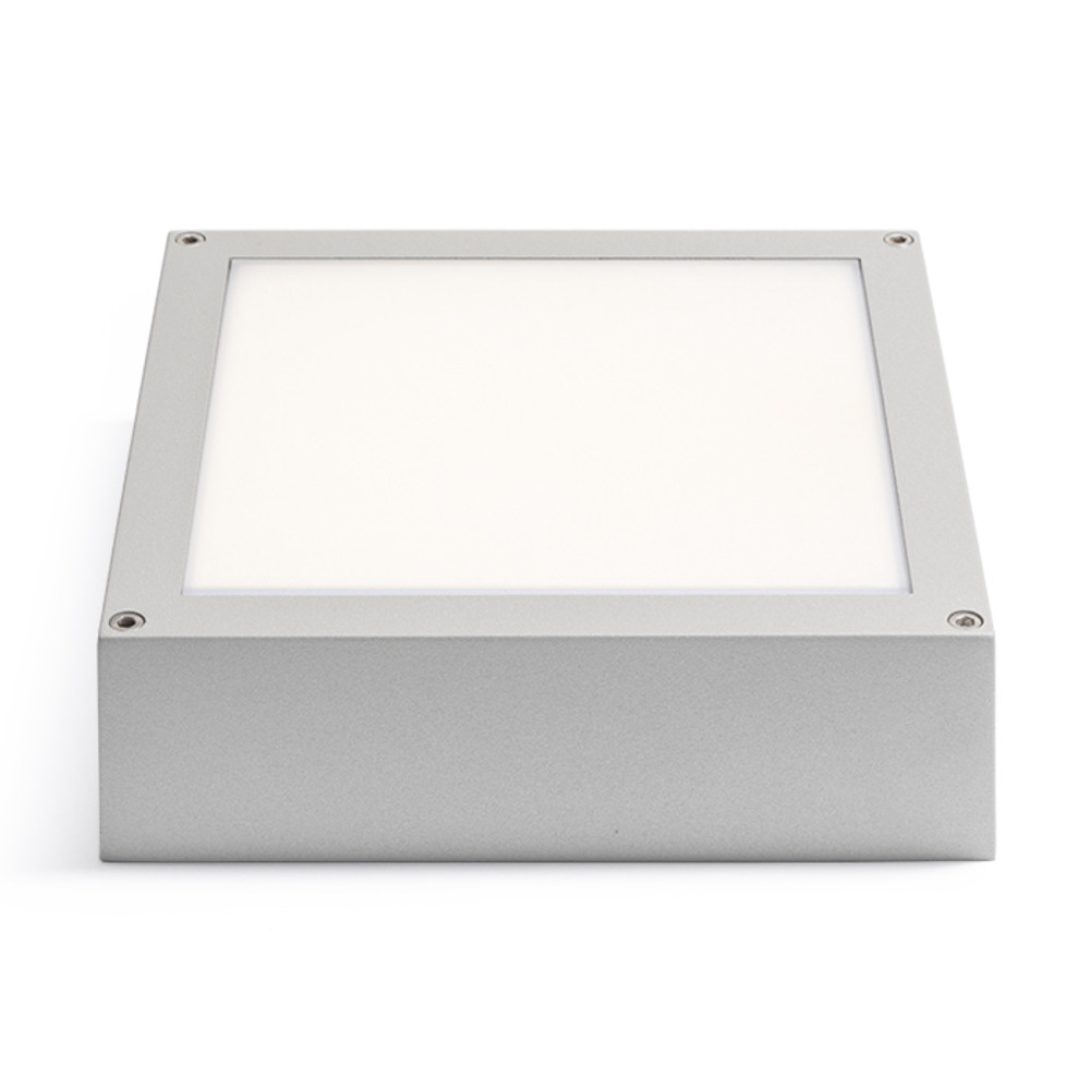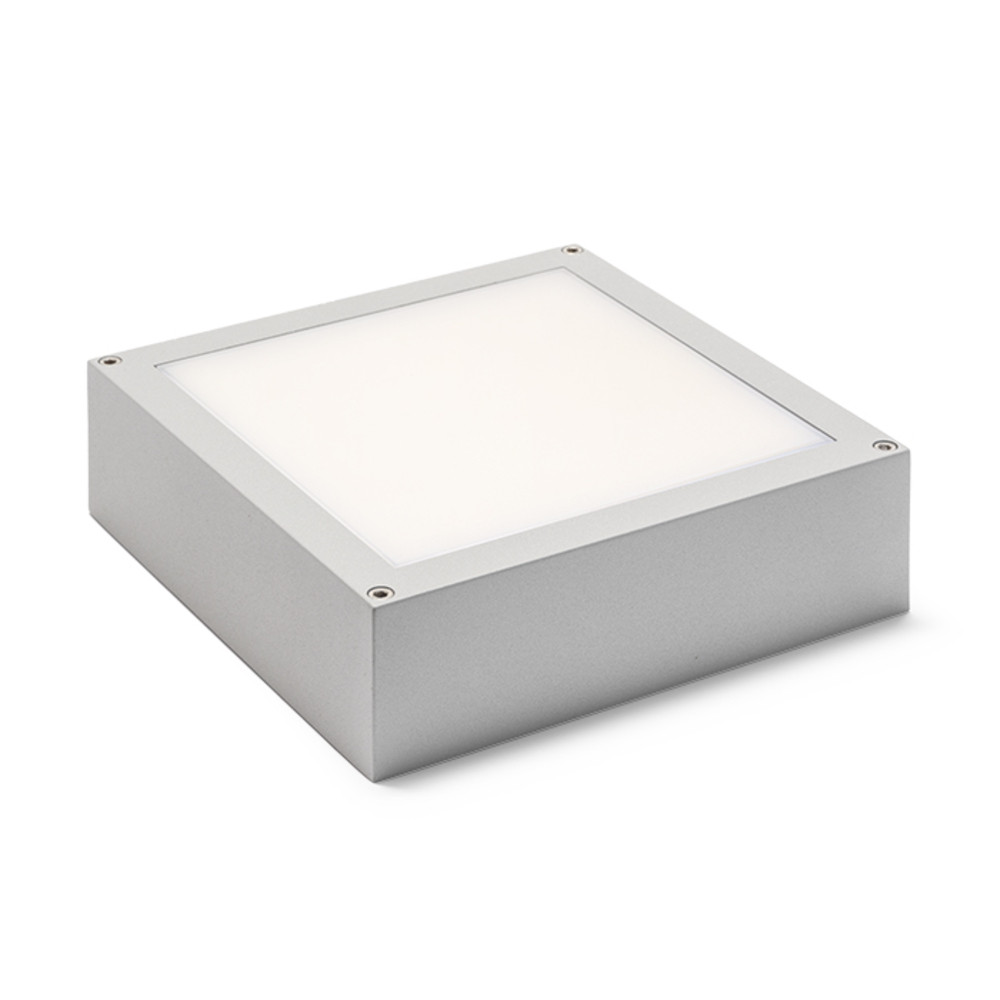 Kültéri négyzet alakú felületre szerelhető lámpa LED technológiával. Az előlap opálakrilból készül.