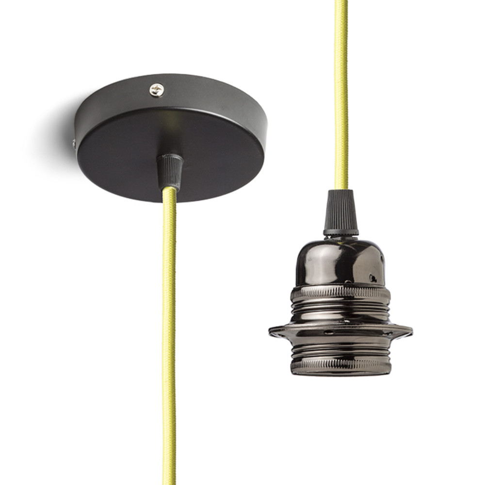 Függesztő készlet, kör alakú, fekete lakkozott alappal, textil kábellel, valamint egy fém E27 foglalattal. Alkalmas önálló használatra, vagy lámpák függesztésére. Megfelelő lámpabúrák: ARISTA, DELI, JAKARANDA, DOUBLE 40/30, DOUBLE 55/30, ASPRO 40/30, RON 40/25, RON 55/30, RON 60/19, TEMPO 30/19, TEMPO 50/19.