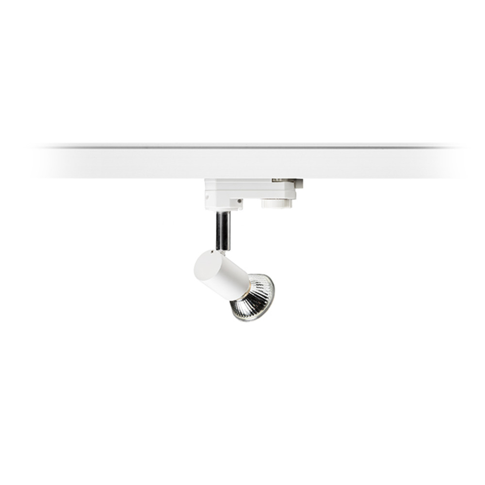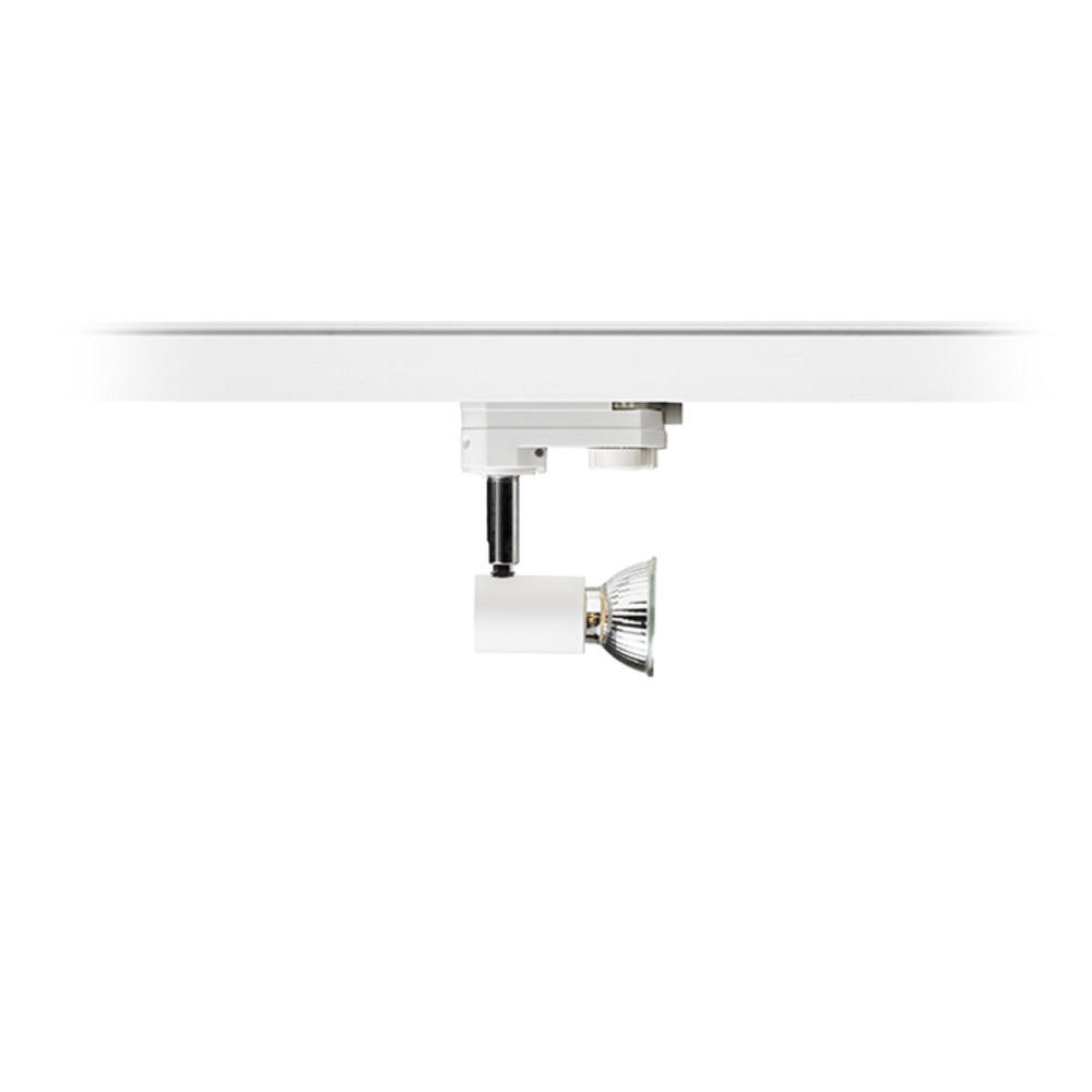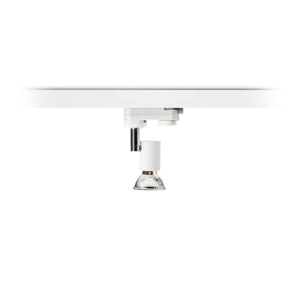 Lámpa háromkörös sínrendszerhez, GU10 foglalattal. Használható 111 mm vagy 51 mm átmérőjű fényforrással. A termék méretei a fényforrás nélkül értendők.