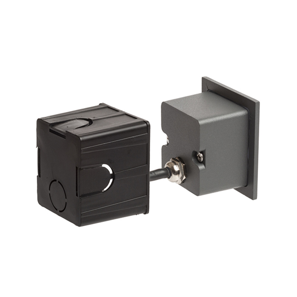 Szögletes, süllyesztett lámpa, amely egyaránt alkalmas beltéri és kültéri használatra, három színben, szerelődobozzal együtt. Telepítése fényforrással lefelé.