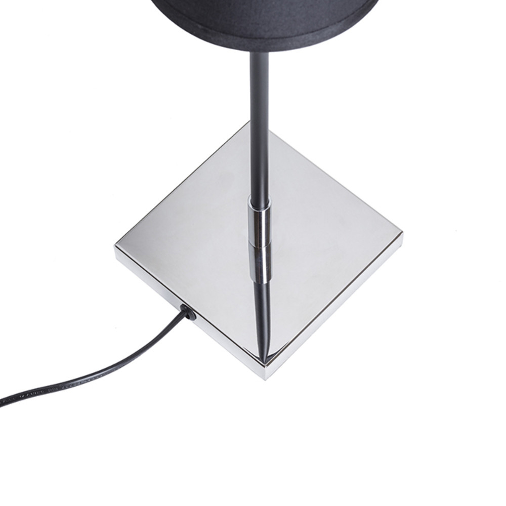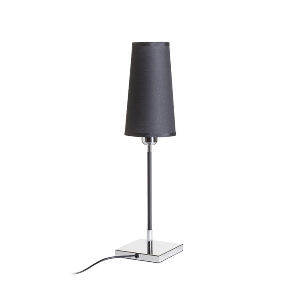 Asztali lámpa textil, kúp formájú lámpaernyővel E27 menetre rögzítve. Króm és fekete színű rúd elegáns kombinációja.
