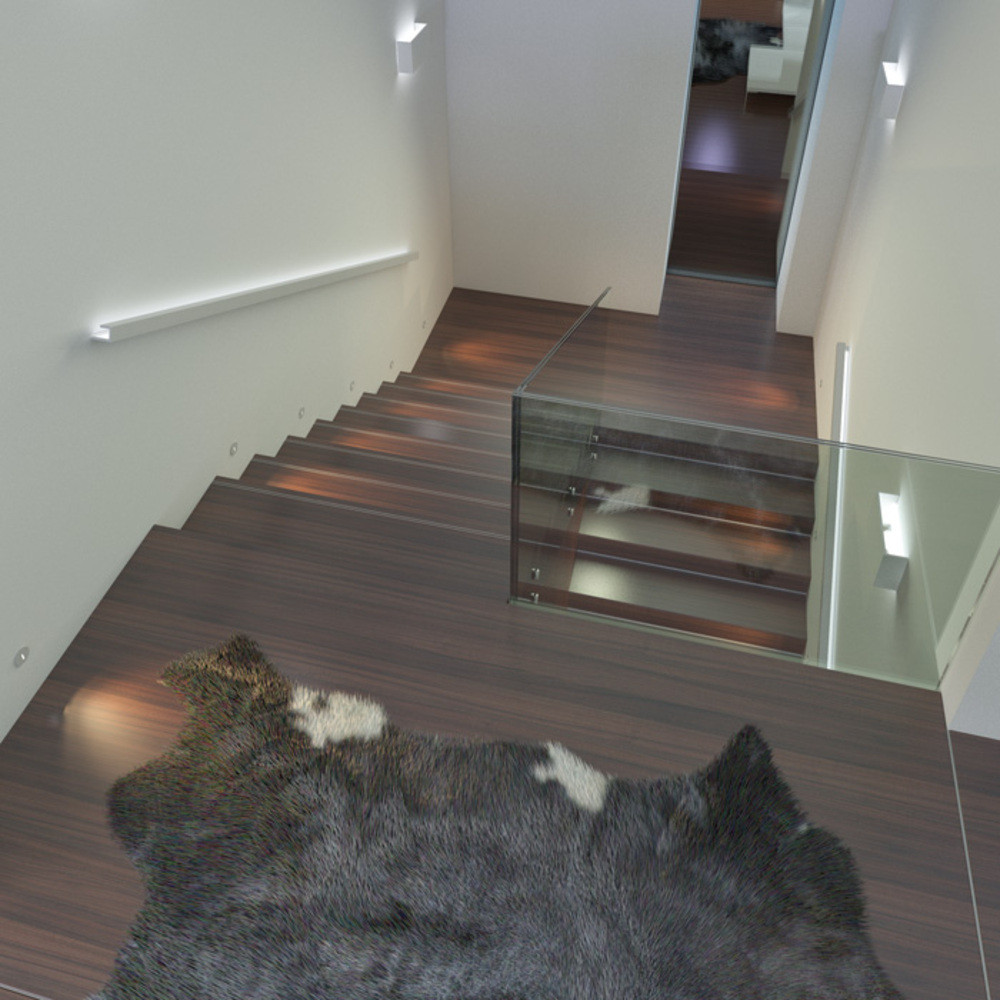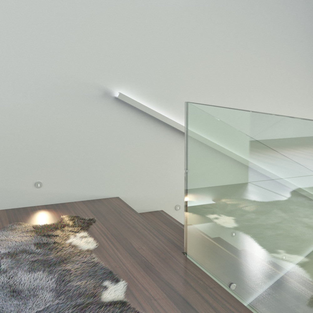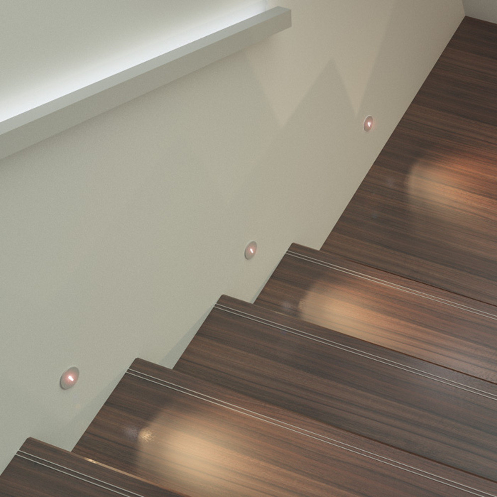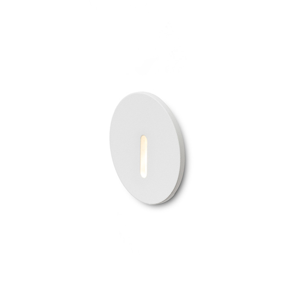 Süllyesztett, kör alakú fali LED lámpa, keskeny fénysugarat kibocsátó nyílással.