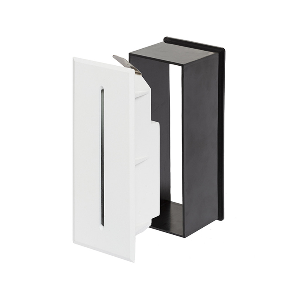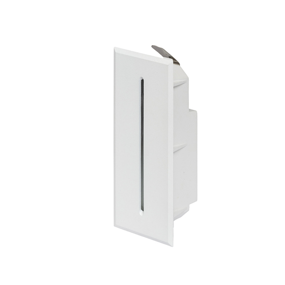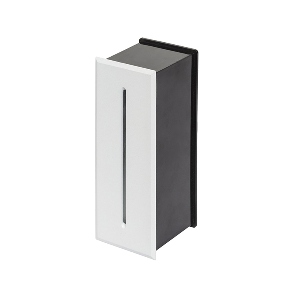 Kültéri süllyesztett LED lámpa falba történő beépítéshez, finom fénykibocsátással egy keskeny résen keresztül.