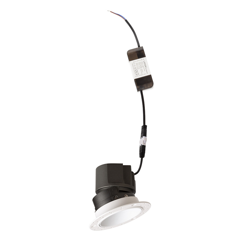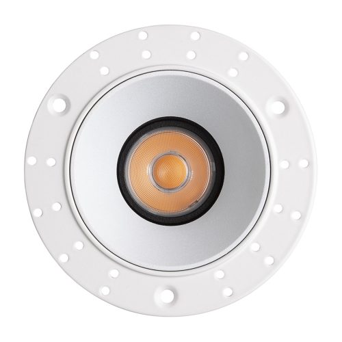 Süllyesztett, keret nélküli LED lámpa, belső fehér dekoratív reflektorral. A lámpatest megjelenése megváltoztatható az opcionálisan megvásárolható ANTARES dekoratív reflektorral.