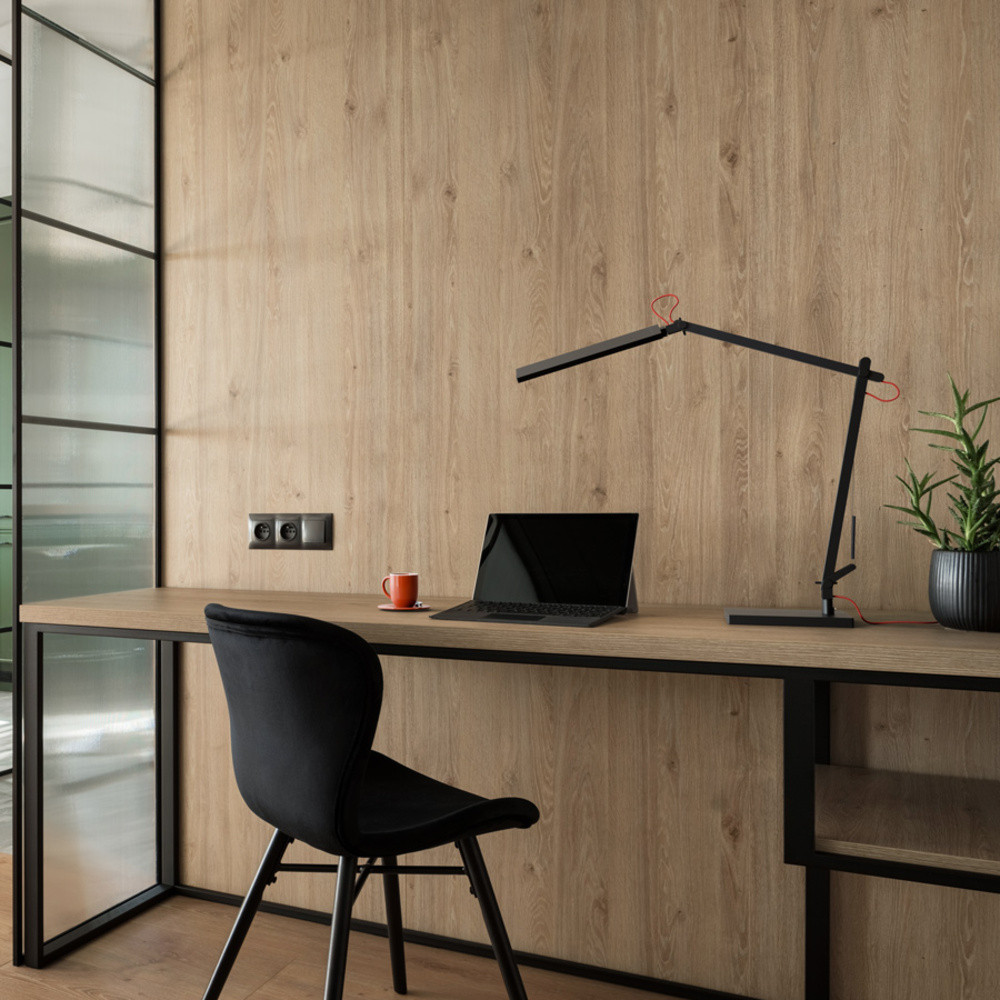 LED asztali lámpa két karral. A fényerősség és a szín szabályozása a reflektor tetején található. Háromfokozatú fényerőszabályzás. A lámpa az EMA (R14290, R14291) rögzítő külön megvásárlásával az asztallapra vagy polcra is rögzíthető.