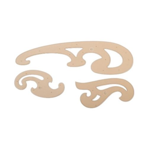 Átlátszó, műanyag görbevonalzó készlet műszaki rajzokhoz.