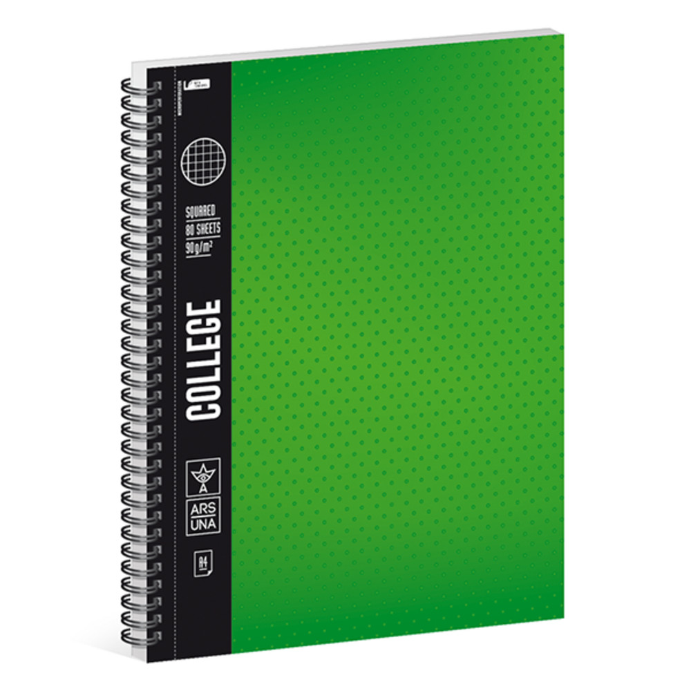 Spirálfüzet kockás ARS UNA College A/4 80 lapos zöld