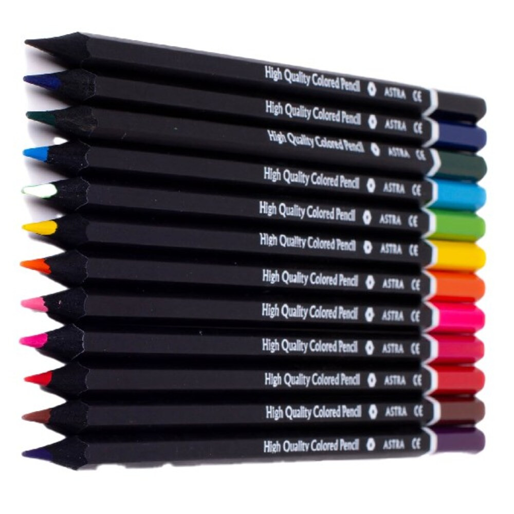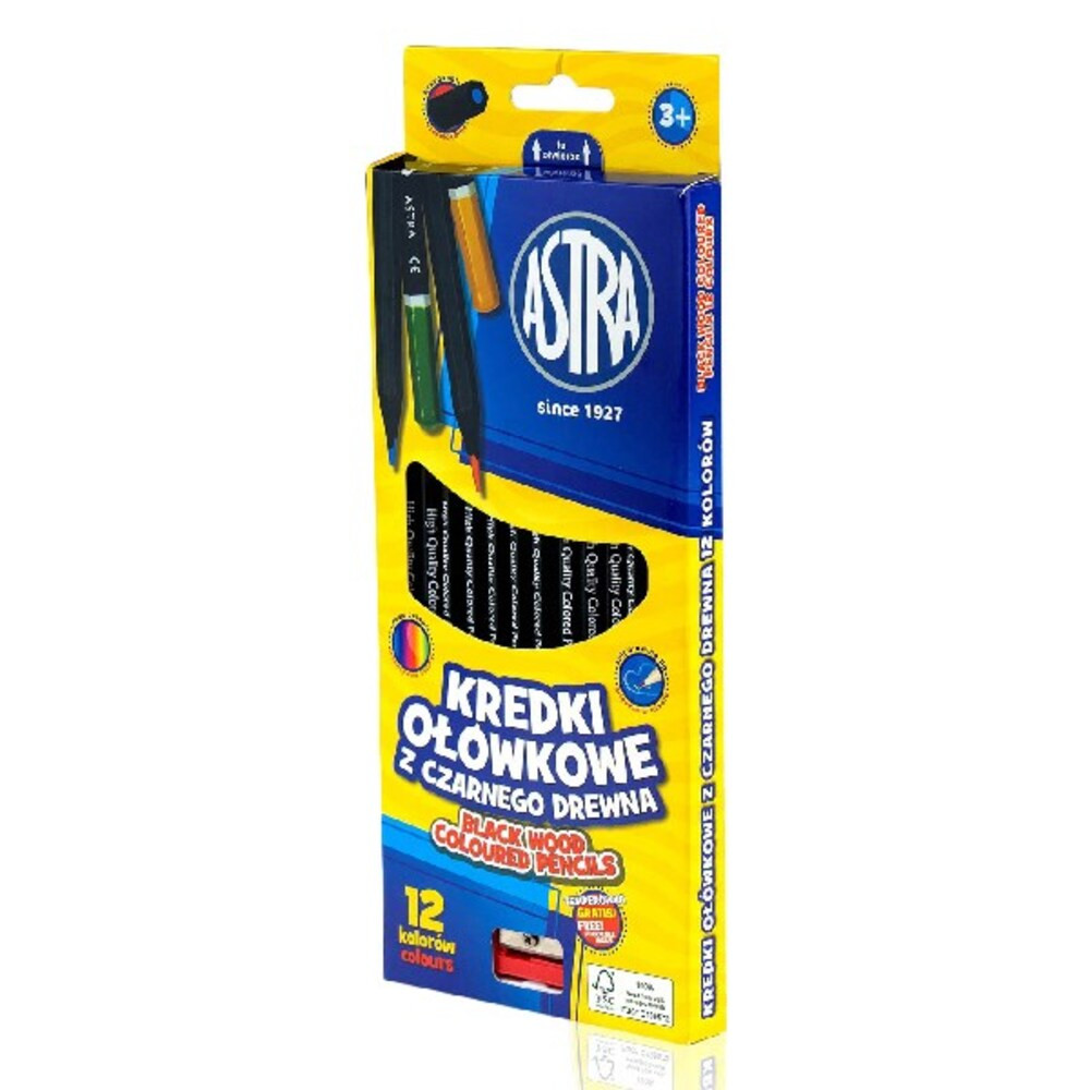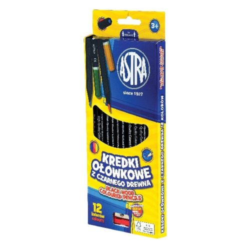 Színes ceruza ASTRA fekete hatszögletű testű 12 színű ajándék hegyezővel