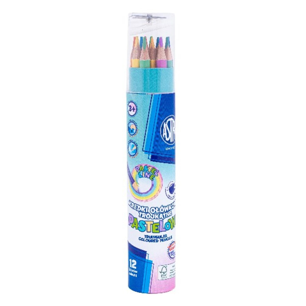 Színes ceruza ASTRA pasztell háromszögletű hegyezővel 12 színű