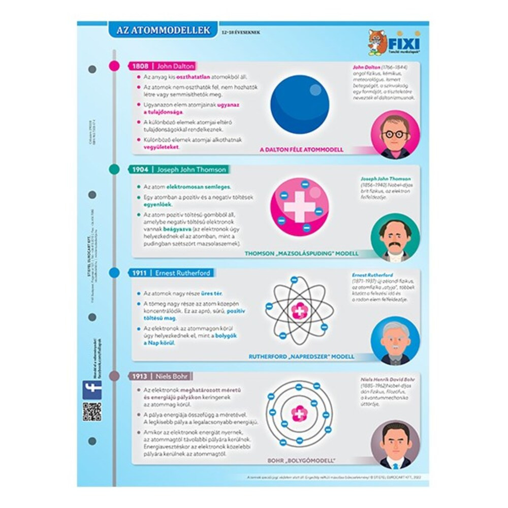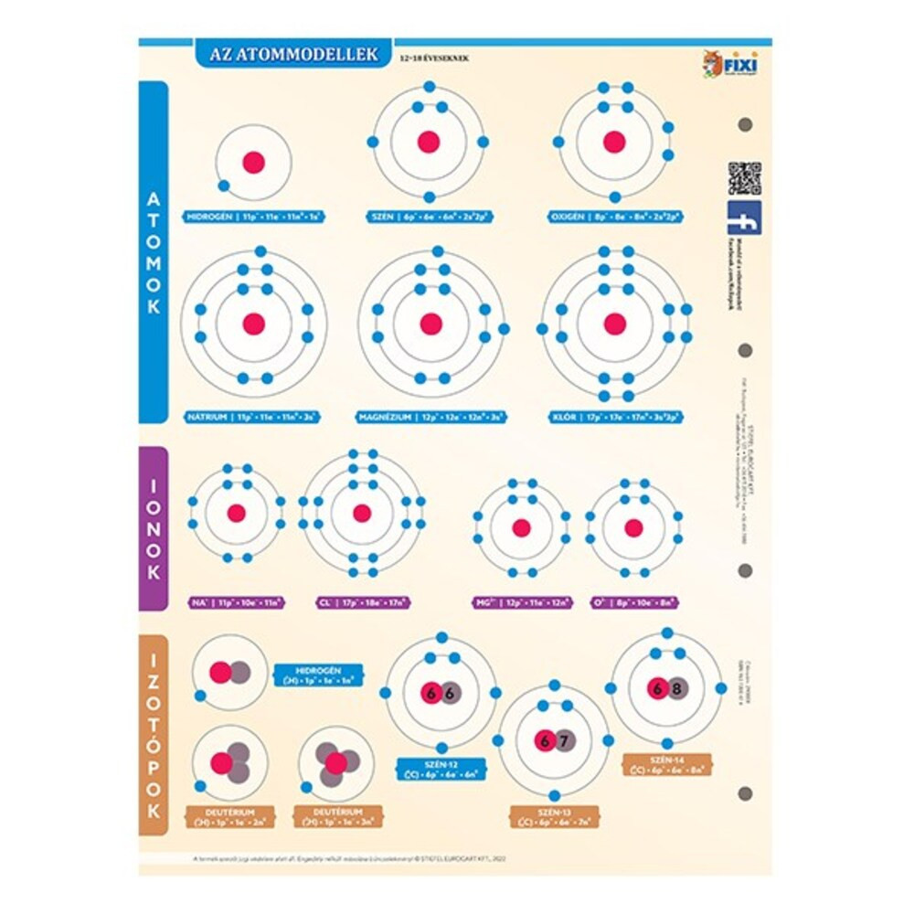 A munkalap segítségével részletes betekintést nyerhet az újkori atommodellek elméletéről, felépítéséről. A munkalap másik oldalán a legismertebb atomok, ionok és izotópok szerkezetei vannak feltüntetve.